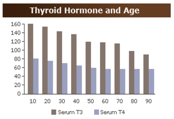 As a man ages, his thyroid gland becomes “lumpy,” and hormone production slows. As a result, T3 and T4 levels drop and symptoms appear.